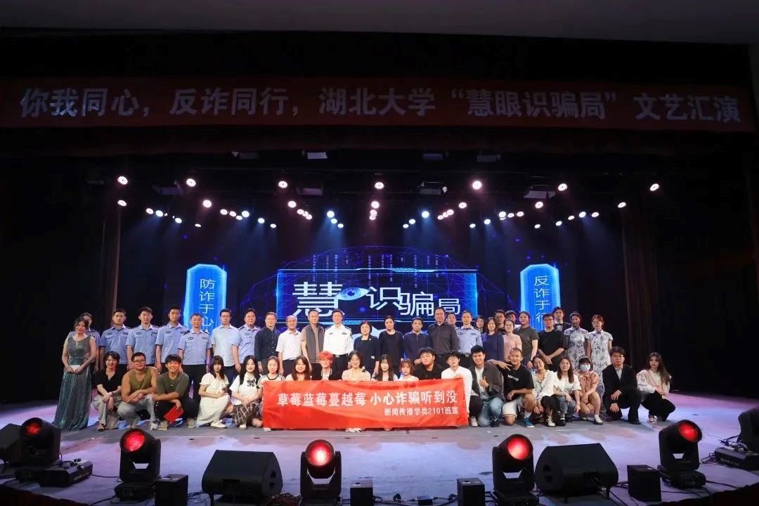 “千万不要给陌生人转账,谨防上当受骗!”警察走上舞台,和员工一起讲解防诈常识,给观众打了一剂“预防针”。5月25日晚,公司小礼堂正在进行一场“慧眼识骗局”文艺汇演。湖大同学们自创自演,联动武汉民警,通过相声、小品、魔术等喜闻乐见的形式,向全校师生宣传防诈知识。