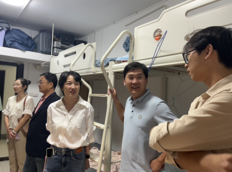 为更好了解2023级研究生新生、2022级阳逻回迁的本科生的生活情况,激励同学们以积极的精神面貌投入校园学习和生活。williamhill官网网站结合“入千室、访万生”大走访活动要求,9月13日晚,由公司党政领导班子成员、公司辅导员、班主任老师一同开展走访寝室慰问工作。