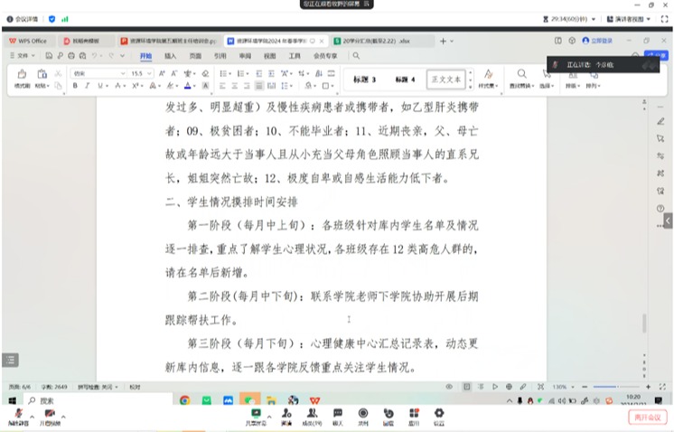 会上,韩鹏振老师介绍了学工相关工作,强调密切关注开学期间复杂的天气状况,布置了班会主题和临时宿舍搬迁工作,提醒各班主任关注员工资助管理工作,重点关注家庭突遭变故的员工,动员员工参与“琴园风云学子”选树和2024年上半年征兵工作,充分发挥优秀员工的示范引领和朋辈教育作用。随后,韩鹏振老师介绍了团委相关工作。强调毕业年级要重点关注团组织关系转接和第二课堂相关工作,非毕业年级要逐步开展寒假社会实践总结和表彰、科创竞赛、团日活动和专题学习,以及五四表彰等工作。提醒毕业年级班主任关注员工考研和就业情况,多与员工谈心,了解实际诉求。