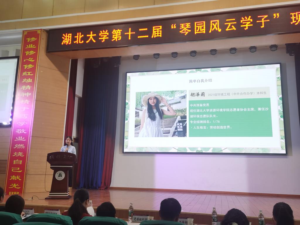 2021级环境工程(中外合作)专业胡泽莉同学以“劳动为犁,深耕韶华”为主题进行展示。她现任williamhill官网网站志愿者协会主席、沙湖环保志愿队队长,多次参与志愿服务活动,不仅在志愿服务方面表现突出,学习成绩同样名列前茅,展现了资环学子风采。