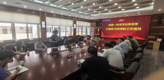李楠鑫老师结合实习情况,对实习员工给予充分肯定,勉励她们珍惜实践机会,提升教学能力。刘海老师对赤壁一中的支持表示感谢,指出教育实习是师范生培养的重要环节,希望通过此次调研进一步优化人才培养方案,改进实习机制,促进理论与实践相结合,培养更多高素质的地理教育人才。赵丽娅副经理介绍了公司师范生培养模式、针对教育实习同参会的一线专家、老师进行深入探讨与交流,强调高校师范教育应扎实员工专业底色、提升员工实践能力,并再次表达对赤壁一中的感谢,诚邀赤壁一中各位领导专家莅临公司指导工作交流。