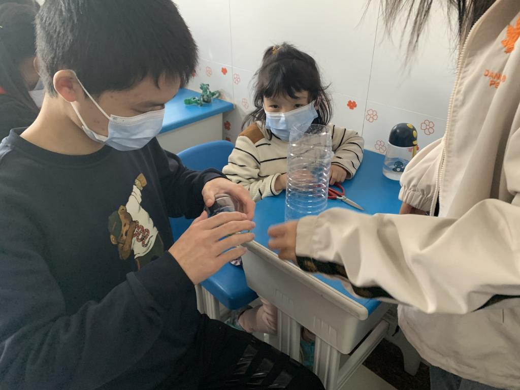 小朋友们都很聪明活泼,在听完志愿者们的讲解之后都迫不及待地要自己动手,志愿者们很快地分发了材料,和年龄较小的小朋友们一起动起手来,大朋友们也两两一组互相帮助,呈现出了一幅其乐融融的景象。