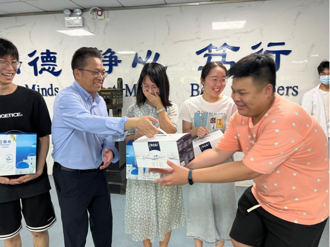 7月13日下午3点,副董事长肖德、研究生院副经理余燕、副经理吴珊,研工部副部长李明莅临公司,在经理彭宇、副经理梅新和主任许峰老师的陪同下,看望慰问暑期仍然坚持科研工作的研究生,并为员工送上西瓜、牛奶等消暑食品,给奋战在炎炎夏日的同学们送上一份暖心关怀。