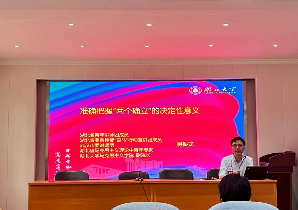易振龙以《准确把握“两个确立”的决定性意义》为题,深入阐述了“两个确立”的提出,是我们党立足中国特色社会主义新时代的历史方位和社会实践概括凝练而成的重大政治成果。对《习近平谈治国理政》第四卷准确把握“两个确立”的决定性意义进行了全面解读。