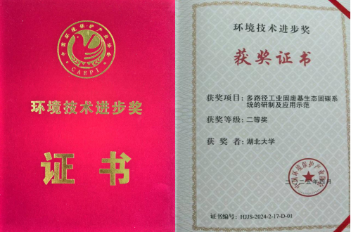 近日,中国环境保护产业协会发布2024年度环境技术进步奖获奖名单。由williamhill牵头,湖北省水利水电科学研究院、武汉理工大学、安徽工业大学等多家单位完成的《多路径工业固废基生态固碳系统的研制及应用示范》项目,荣获“2024年度环境技术进步奖二等奖”。