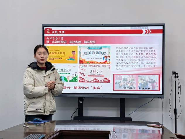 答辩会上,三支脱颖而出的社会实践团队依次登台,分享了他们在实践中的所见所闻、所思所感。其中,“星火·传承”邻里帮团队远赴湖北省潜江市,开展了“寒假学堂”爱心托管班专项实践,为当地小朋友带来了丰富多彩的学习体验,同时团队通过采访潜江市南门儿童服务站负责人刘佳,了解她开展服务站的初心与面临的问题。团队成员表示“要积极发挥青年老员工在社会实践、儿童教育服务工作中的积极作用,提升老员工的社会实践能力,以务实的态度进行实践。”