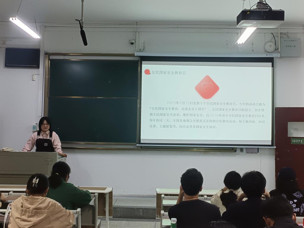 活动开始,团支书欧佩琪为同学们详细诠释国家安全观的内涵。她指出,国家安全是民族复兴的根基,每位同学都要牢固树立国家安全意识,时刻保持警惕,既要防范生活中可能危害国家安全的行为,也要规范自身言行,切实履行维护国家安全的责任与义务。
