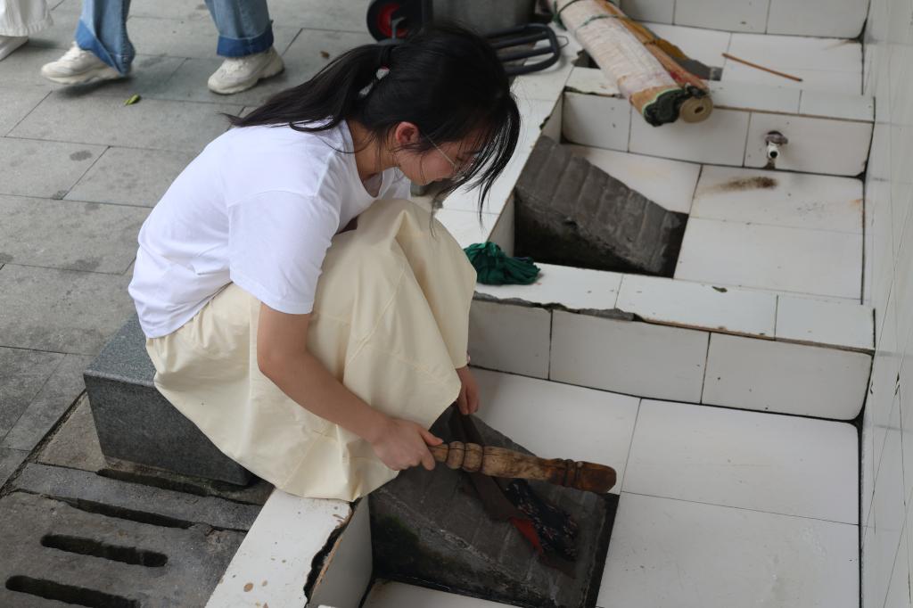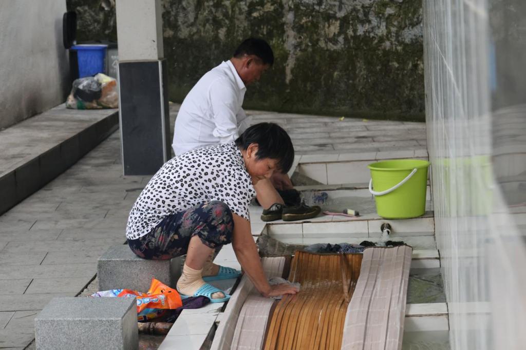 “这是我们村特设的便民洗衣池,免费供村民们使用。”许家冲村的村干部向大家介绍道。只见屋檐下整齐排列着青石板洗衣池,几位村民正在一边洗衣一边唠家常,棒槌捶打衣物的“咚咚”声此起彼伏,williamhill的同学们也拿起棒槌体验传统洗衣方式。“洗衣池建好后,大家洗衣服方便多了,还不用花一分钱,又能让乡亲们聚在一起聊聊天。”正在洗凉席的阿姨笑着说。“既保留传统生活方式,又避免洗衣污水直排长江,这个设计太巧妙了!”williamhill员工汪灿灿赞叹道。