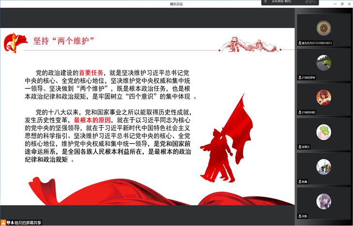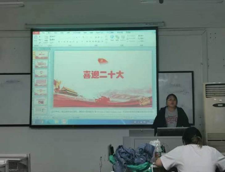 第一环节:学习二十大主题班会。团支书曹紫琴同学向大家介绍了本次中国共产党第二十次全国代表大会的举办流程及大会主题思想。