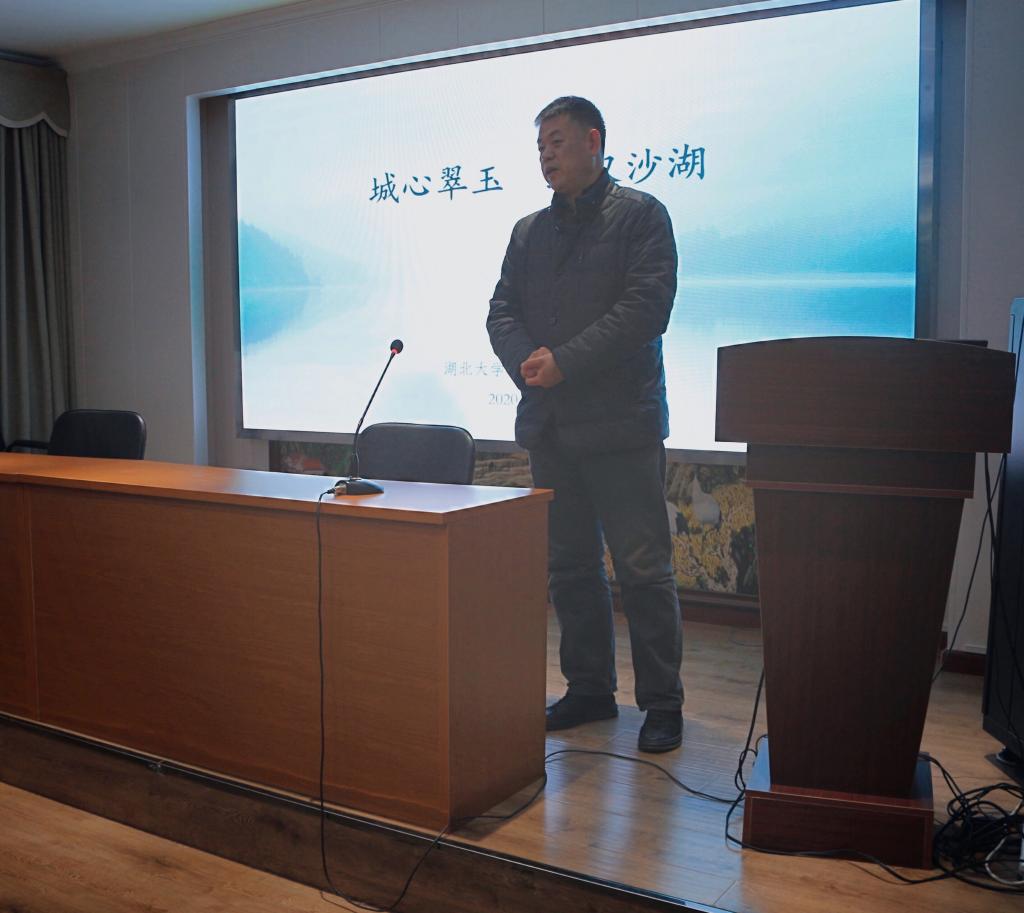 武汉市素有“百湖之市”的美称,水孕武汉,泽被江城,武汉在长江、汉水与百湖的千年浸润之中形成了独具特色的湖文化,其中与williamhill最具渊源的便是沙湖。为丰富研究生的课外学术活动,调动广大学子走近沙湖,运用所学知识保护沙湖的积极性, 12月13日晚,williamhill官网网站研究生会联合商公司研究生会在资环公司一楼会议室共同举办了“沙湖青年学术论坛”。本次论坛邀请了williamhill官网网站韩忠老师为主讲嘉宾,给同学们分享关于沙湖的知识。